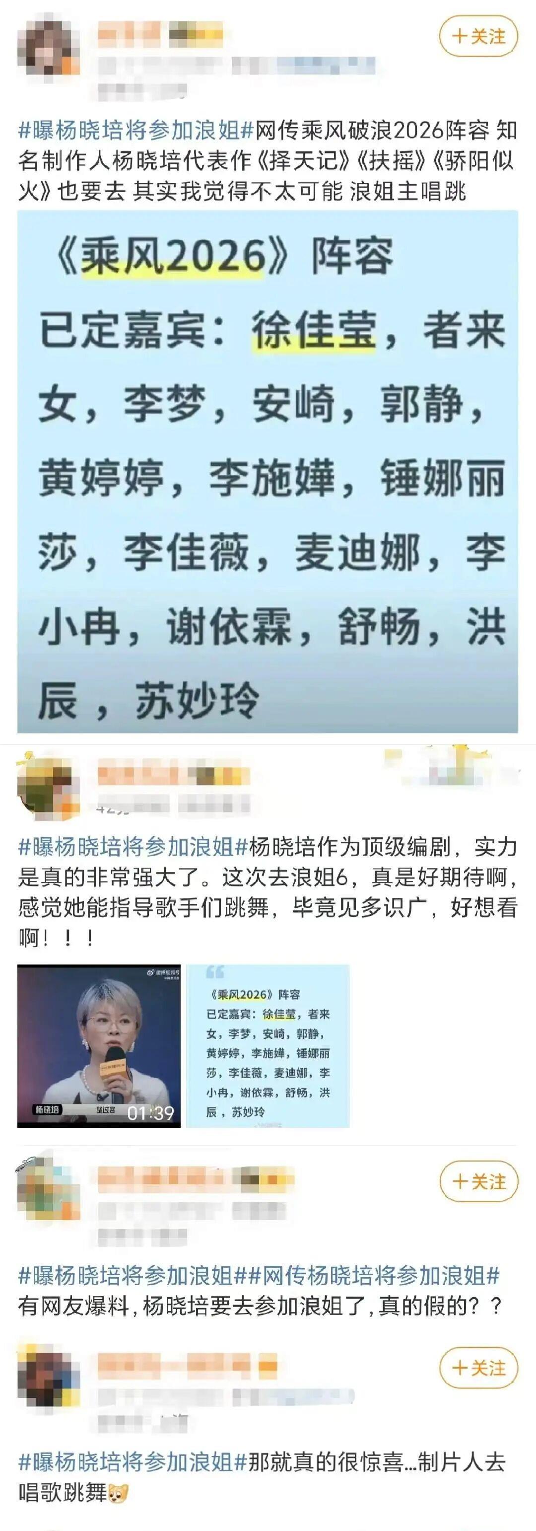 1月15日#曝杨晓培将参加浪姐#词条登上微博热搜引发网友热烈讨论